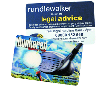 Digitally printed onto a laminated plastic. Available with photos barcodes signature strips scratch foil and individual numbers at extra cost.Promotional Items Types: - membership card cards