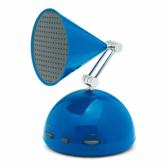 FM radio with lunar module and satellite design. Mechanically adjustable. Plastic housing. 2 AAA batteries not included.
