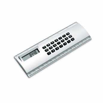 15cm ruler with 8 digit calculator. In ABS finish. 1 button cell batery included